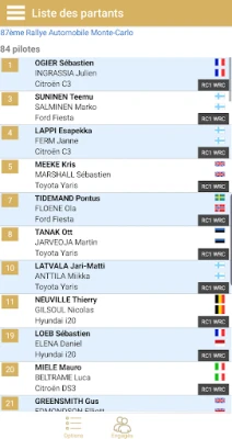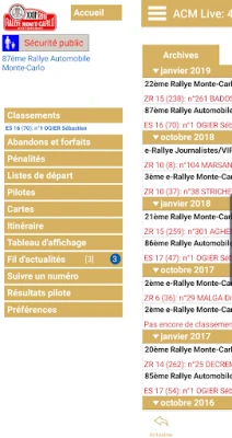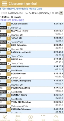 Classements en direct de rallyes et courses de côte: