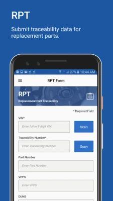 • Pre-authorize specific warrantable repairs (PRA) • Use photos to improve efficiency of the Part Return Process (PPR) • Send part information for traceability (RPT) • Submit detailed Field Product Reports (FPR) • Lookup and view recalls on vehicles (Recall) • Access the Service Workbench