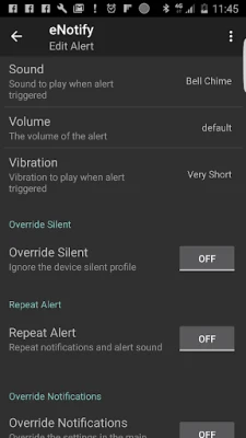• Override Silent: Configure some email alerts to override the device silent profile