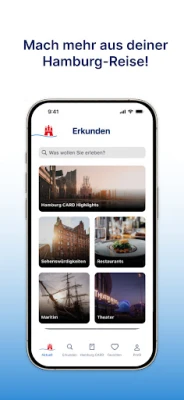 With Hamburg app you’ll get informed about the latest Hamburg CARD discounts that you can get at harbour tours, Alster lake trips and city tours, museums and restaurants. Moreover Hamburg CARD is your ticket for unlimited travel by bus, train and harbour ferry. You can buy and redeem Hamburg CARD easily via app.