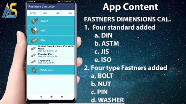 3. Fasteners dimensions - Nut, Bolt,Washer & pin with four type