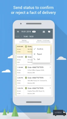 - confirm delivery by attaching a photo with customer signature to an order with data on customer name, delivery time and date indicated on a photo;