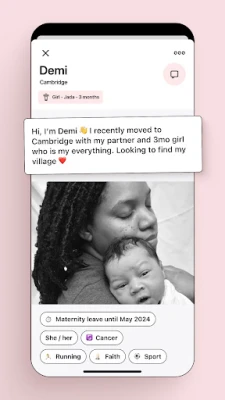 💬 Chat: Match with a new mom friend and chat about anything, baby advice, or mom hacks.