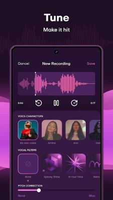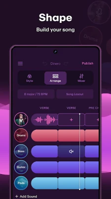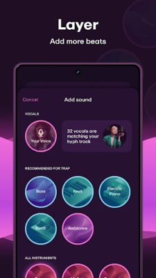 Create using 11M+ sounds produced by musicians worldwide. Swipe between beats, instruments, and genres to shape your song. Start with an artist vocal or record your own idea, build it layer by layer, then share instantly or export in release-ready quality.