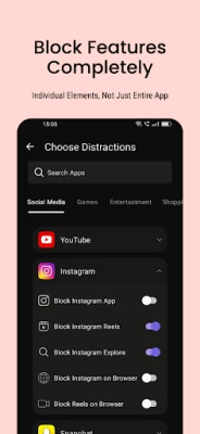 ✅ Block Addictive Features Inside Apps – Restrict Shorts, Reels, For You pages, or any other addictive feeds while keeping essential functions accessible for work or studies like messaging and search.