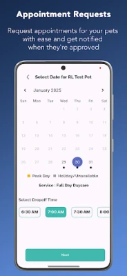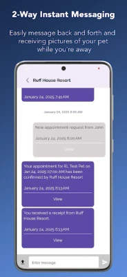 With Ruff House Resort app, you can request a reservation for your pet, send messages, add special features and amenities pet spa, and more!