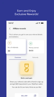 8. Referral Rewards: Share your unique referral code to earn rewards and monitor your progress.